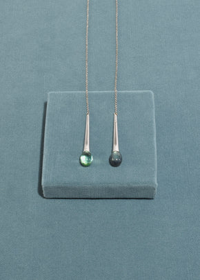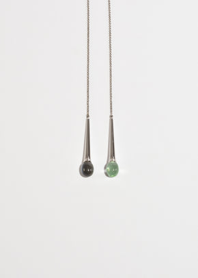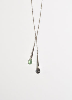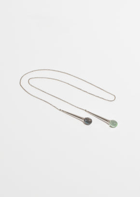 Continue shoppingRare, vintage sterling chain necklace with green crystal and labradorite detail, tie closure. Stamped, 925 Baccarat.