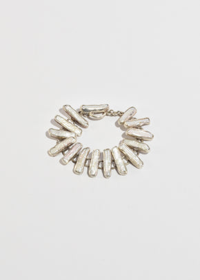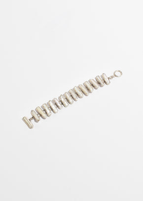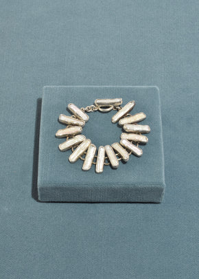 Continue shoppingRare, vintage sterling link bracelet with elongated freshwater pearls and pearl hook and eye closure. Stamped, Dreamer Sterling.