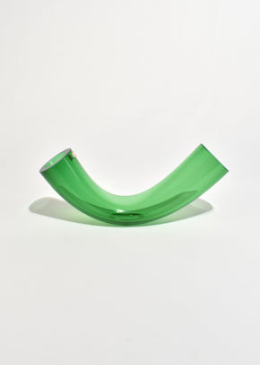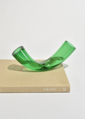 Continue shoppingRare vintage glass curved vase with a double opening. Beautiful, sculptural piece on its own or paired with favorite flowers.