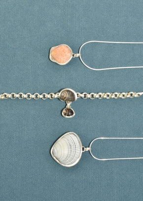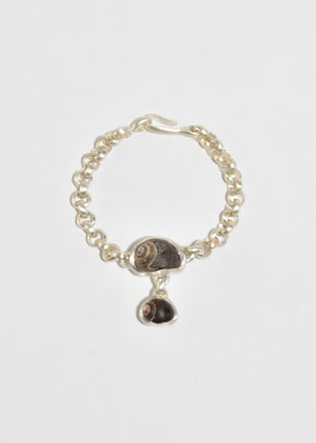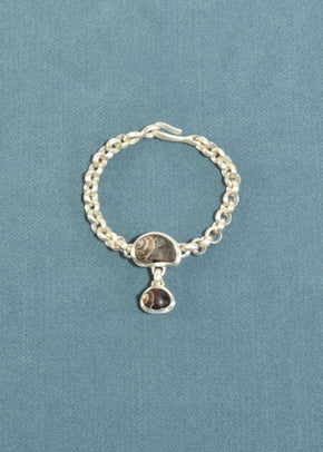 Continue shoppingThe Oliver Bracelet features a handmade sterling silver chain with two bezel set shells. Each link is cast in silver from wax, hand assembled in Brooklyn with a hook clasp.