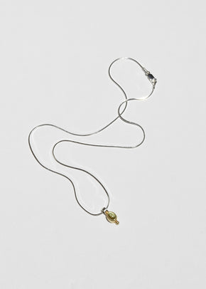 Continue shoppingBeautiful, vintage two-tone necklace with a petite oval peridot cabochon and clasp closure. Stamped, 925.