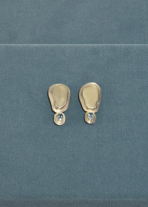 Continue shoppingRare, vintage handmade sterling earrings with clear sea glass and oval faceted blue topaz stones, pierced. Signed by the artist, Ocean Angel Sonja Monds.
