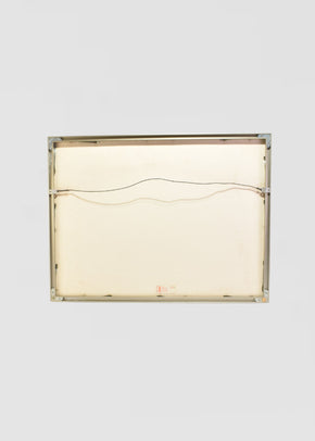 Continue shoppingMid-century abstract watercolor on paper in soft washes of slate, sand, and rust, accented by a bold block of red, blue, and black. Balanced and architectural in composition, with a subtle gradient of atmospheric space above. Signed and dated '65 in ink at lower right (artist unknown).