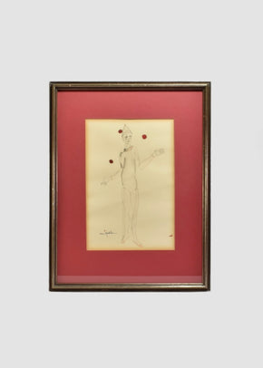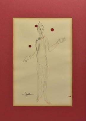 Continue shoppingInk and watercolor on paper. A delicate figure study of a juggler in soft gray wash with fine linear detail and restrained pops of red. The artist captures a sense of balance and quiet tension between motion and stillness. Signed in the lower left, Von Köhler.