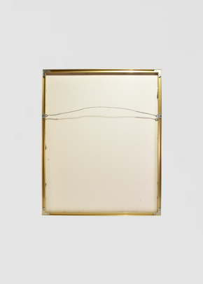 Continue shoppingOffset lithographic poster after the 1915 watercolor by Paul Klee. Published by Nouvelles Images Éditeurs, France, and printed in France. The composition features geometric planes of coral, teal, and indigo beneath a rising moon. Presented in a slim gold metal frame with mat, wire on the back.