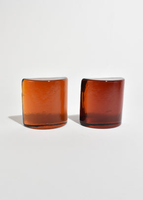 Continue shoppingVintage glass half-moon bookends in beautiful amber color. Set of two by Blenko Glass Company.