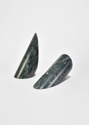 Continue shoppingVintage slanted green stone cylindrical bookends, set of two.