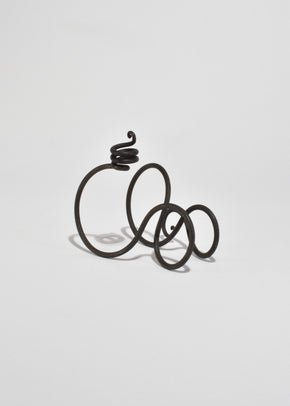 Continue shoppingHand-forged wrought iron candleholder with spiral scrollwork and a coiled top designed to hold a taper candle.