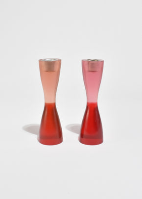 Continue shoppingVintage curvy resin candleholder set of two in pink and red, by Artecnica. Holds a taper candle measuring 1" wide.