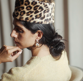 Continue shoppingCast sterling hoops with drop charm detail and recycled glass loop. Can be worn separately or with the added charms to make an especially special bauble. Handmade in the studio of Lizzie Ames in Brooklyn, NY.