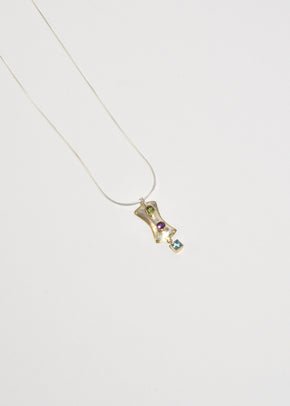 Continue shoppingRare, vintage two-tone necklace with a faceted colorful stone drop detail pendant, clasp closure. Stamped, 925.