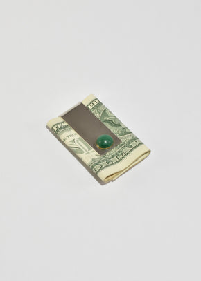 Continue shoppingClassic, vintage sterling money clip with a round malachite cabochon. Stamped, Sterling.