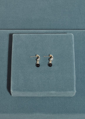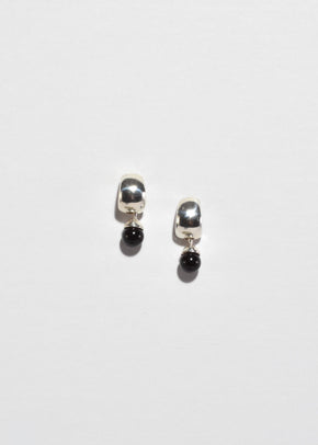 Continue shoppingClassic, vintage sterling semi hoop earrings with round onyx drop detail, pierced. Stamped, 925.