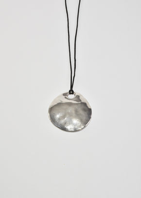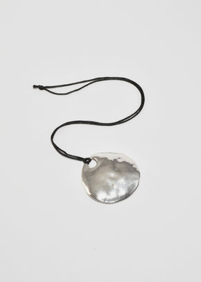 Continue shoppingRare, vintage sterling statement pendant in an organic circle shape set on a black cord with tie closure. Stamped, Bat Ami 925.