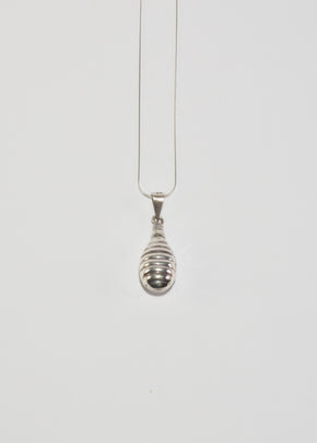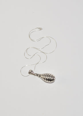 Continue shoppingVintage sterling necklace with an oblong perfume bottle pendant and ribbed detail, clasp closure. Stamped, Mexico 925.