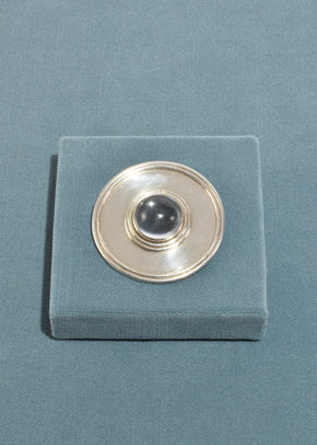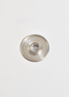 Continue shoppingRare, vintage handmade sterling statement brooch with a round crystal cabochon, pin-back closure.