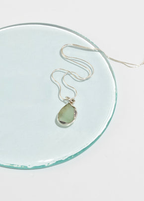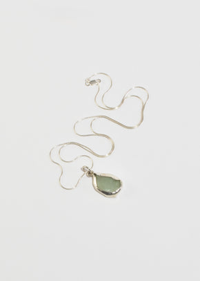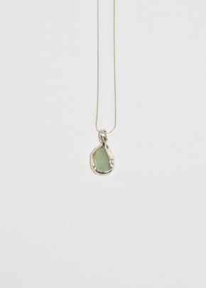 Continue shoppingVintage, sterling necklace with an organic shaped green sea glass pendant and clasp closure. Stamped, 925.