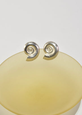 Continue shoppingStunning vintage sterling earrings in the shape of a nautilus shell, pierced.