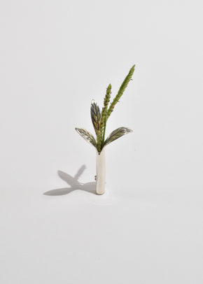 Continue shoppingRare, vintage sterling brooch depicting a sprout with a cylindrical vessel and pin-back closure. Stamped, Sterling.