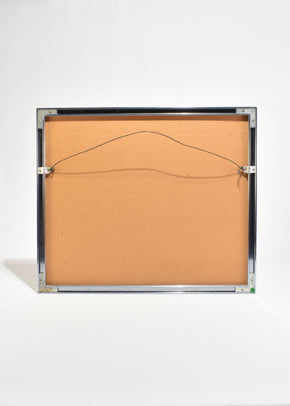 Framed under glass in a slim silver-tone metal frame with an archival mat.