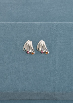 Continue shoppingVintage sterling ribbed fan shaped earrings with colorful glass cabochons, pierced. Stamped, 925.
