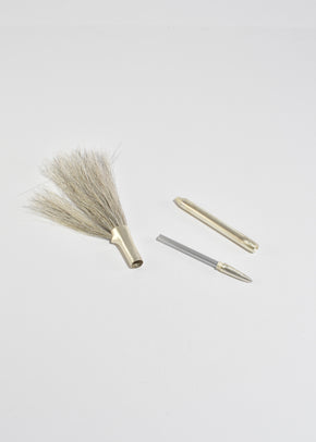 Continue shoppingA plume of silver and horse hair to scrawl strong statements, large lettering and big spiraling doodles. Each pen comes with a set of 3 rollerball gel refills to keep you writing on and on. Handmade in the studio of Lizzie Ames in Brooklyn, NY.