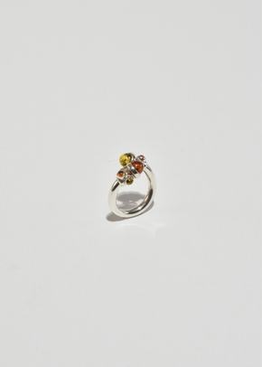 Continue shoppingVintage sterling wrap ring with a cluster of amber cabochons. Stamped, V8PL 925.