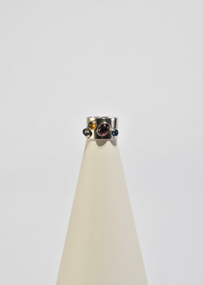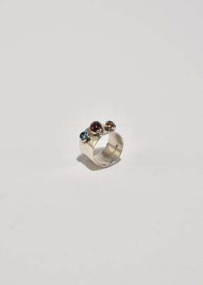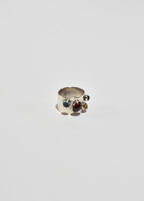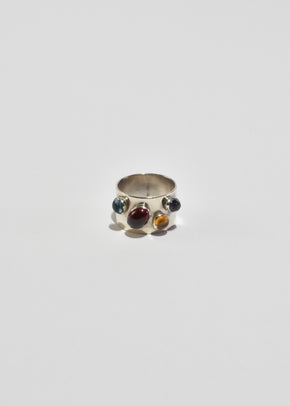Continue shoppingVintage, sterling wide band ring with colorful stone cabochons. Stamped, Sterling.