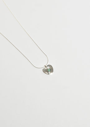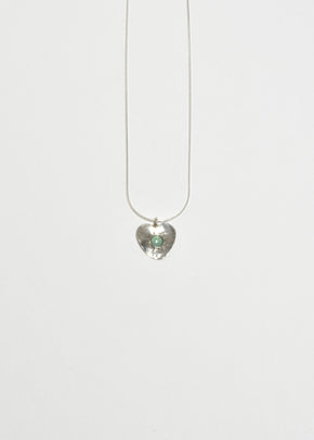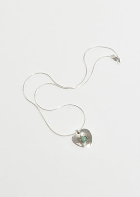 Continue shoppingVintage, sterling necklace with a hammered heart pendant with aventurine detail, clasp closure.