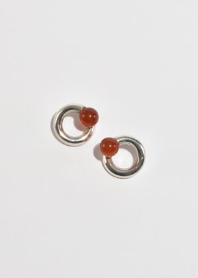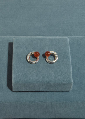 Continue shoppingRare, vintage sterling circle loop earrings with round carnelian stones, pierced.