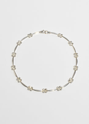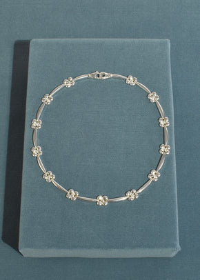 Continue shoppingStunning vintage silver collar necklace with rectangular links and flower detail, clasp closure. Stamped Italy 925.