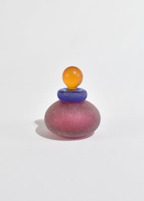 Continue shoppingBeautiful pink glass scavo perfume bottle with orange stopper. Made in Italy, signed Franco Moretti.