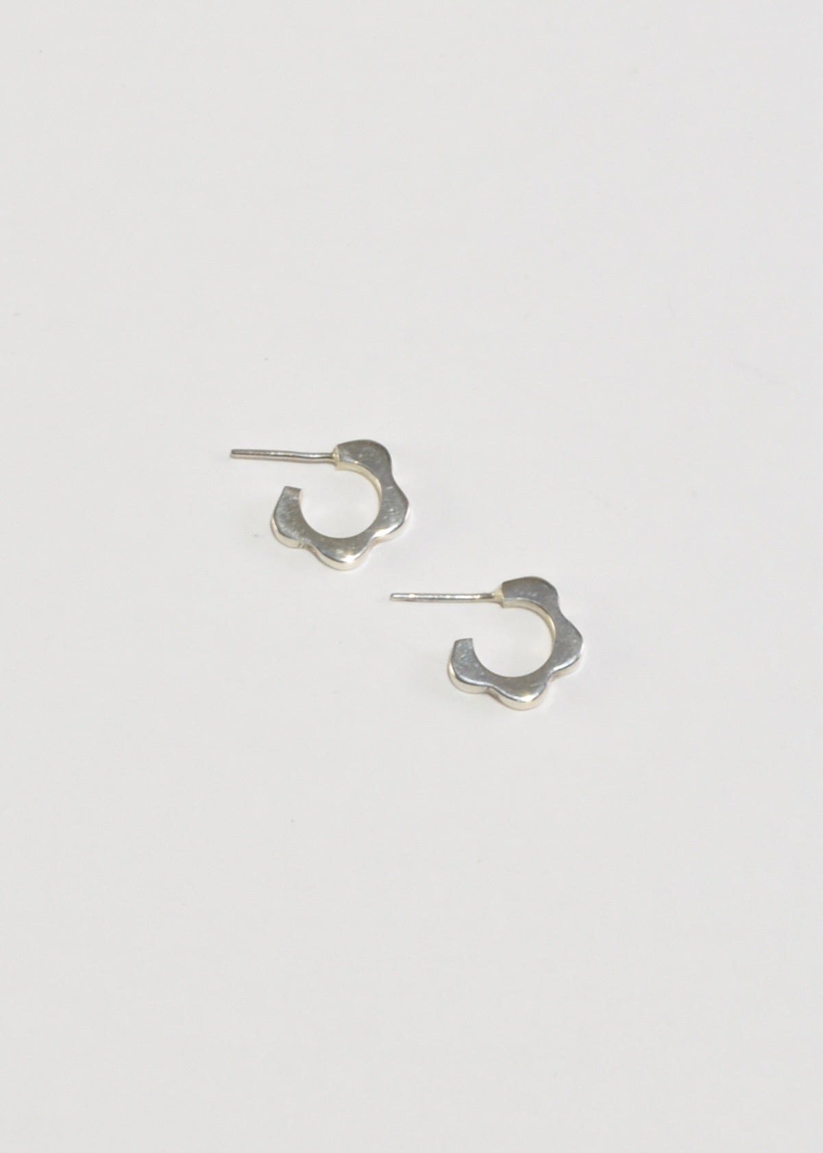 Continue shoppingVintage, sterling mini hoop earrings with a scalloped edge design, pierced. Stamped 925.