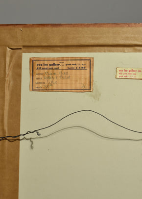 Framed under glass with a blue mat and wood frame bearing the original Eva Lee Gallery, Great Neck label.