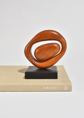 Continue shoppingAbstract carved wood sculpture with interlocking organic forms, each rotating on its axis. Mounted to a black-stained wood base. Signed and dated Paul L Blanton, March 1971 to underside.