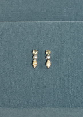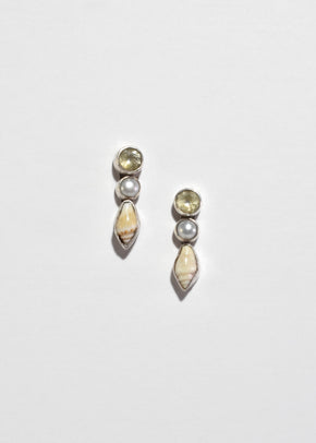 Continue shoppingRare, vintage sterling earrings with faceted quartz stones, round pearls, and shell detail, pierced. Stamped, The Dreamer Sterling.