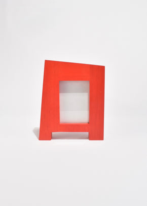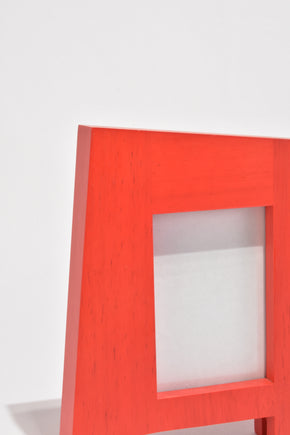 Continue shoppingSculptural double-sided picture frame in red-stained wood, ca. 1990s. Glass on both sides to display two photos measuring 3.5" x 5".