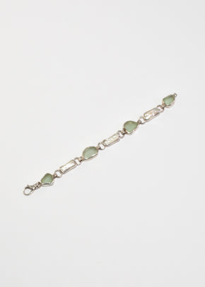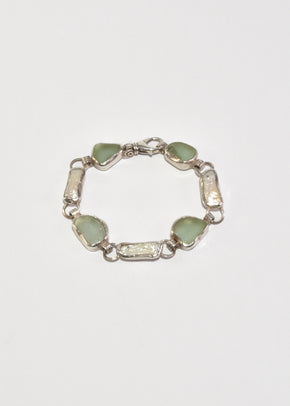 Continue shoppingVintage, sterling bracelet with green sea glass and freshwater pearls, clasp closure.
