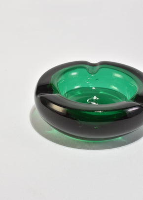 Continue shoppingVintage blown glass catchall or ashtray in a saturated teal. A striking piece for tabletop display, jewelry keeping, or everyday smalls.