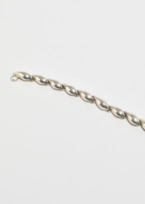 Continue shoppingClassic, vintage sterling bracelet with sculptural teardrop links and hook and eye closure.