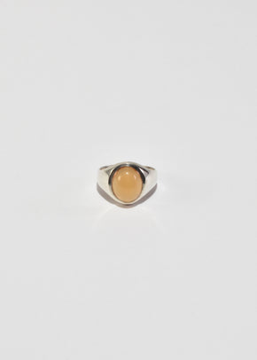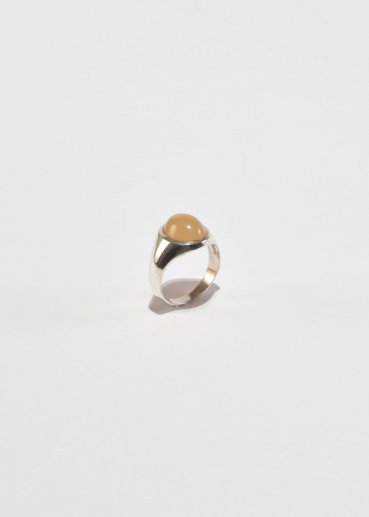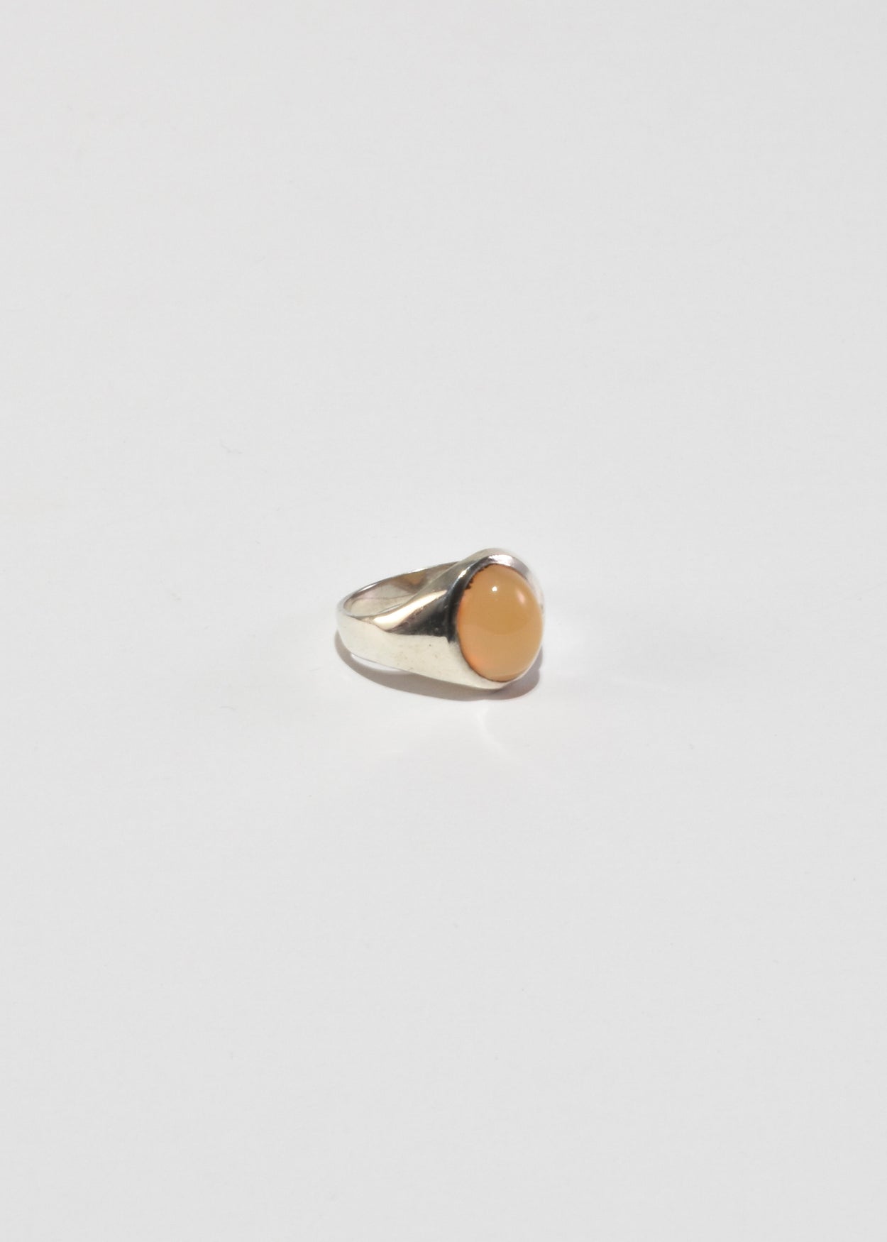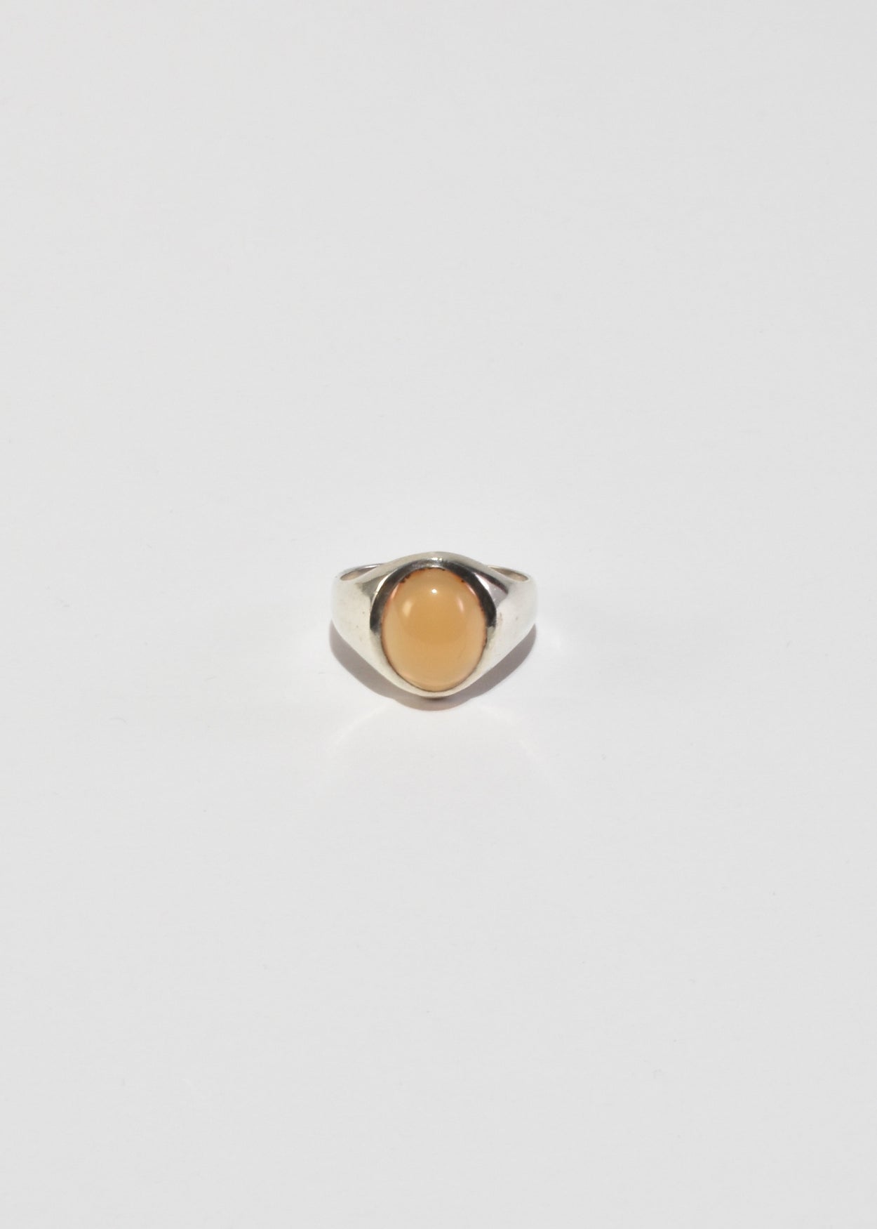 Continue shoppingStunning, vintage 18k white gold ring with a beautiful oval peach moonstone cabochon. Stamped, 715.